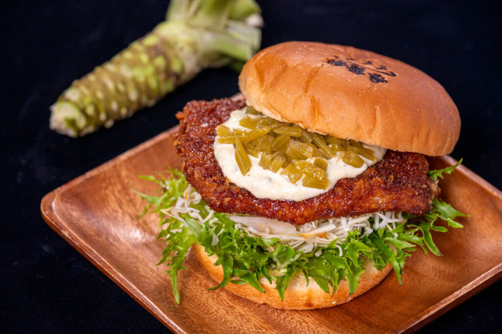 バンズに大きく焼き込まれた「修善寺」の文字が印象的なこのバーガーは、伊豆市の豊かな自然の中で育まれた食材をふんだんに使用し、地元の生産者と飲食店が力を合わせて作り上げたご当地グルメです。