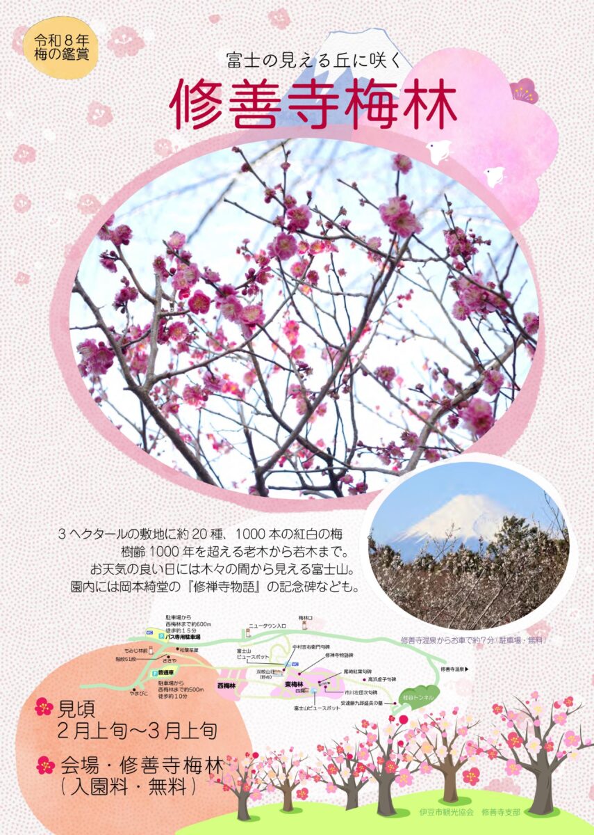 さらに、修善寺梅林は”伊豆で唯一富士山が見られる梅園”とも言われており、ロケーションも抜群です。