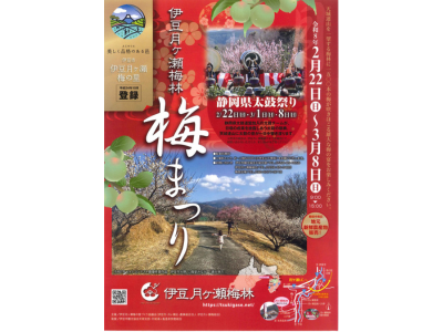国道414号沿いの月ヶ瀬温泉から北へ1.5㎞ほど入った山の斜面に広がる梅林。 伊豆月ヶ瀬梅組合が特産品の梅シロップや梅干し用に栽培しているもので、6.5haの敷地に白加賀、南高、改良内田、古城の4種類1,600本が植栽されています。 1月中旬ころよりほころびはじめ、2月中旬頃に見頃となります。 【日時】 2026年2月22日(日)~2026年3月8日(日) 9:00~15:00 【場所】 伊...