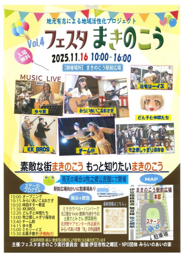 伊豆箱根鉄道・牧之郷(まきのこう)駅に隣接する広場『まきのこう駅前広場』で音楽と食のイベント『フェスタまきのこう』を開催。