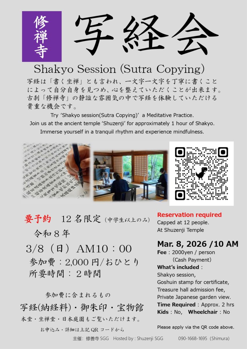 【詳細・ご予約】https://shuzenji-sgg.com/shakyo.html- チラシ