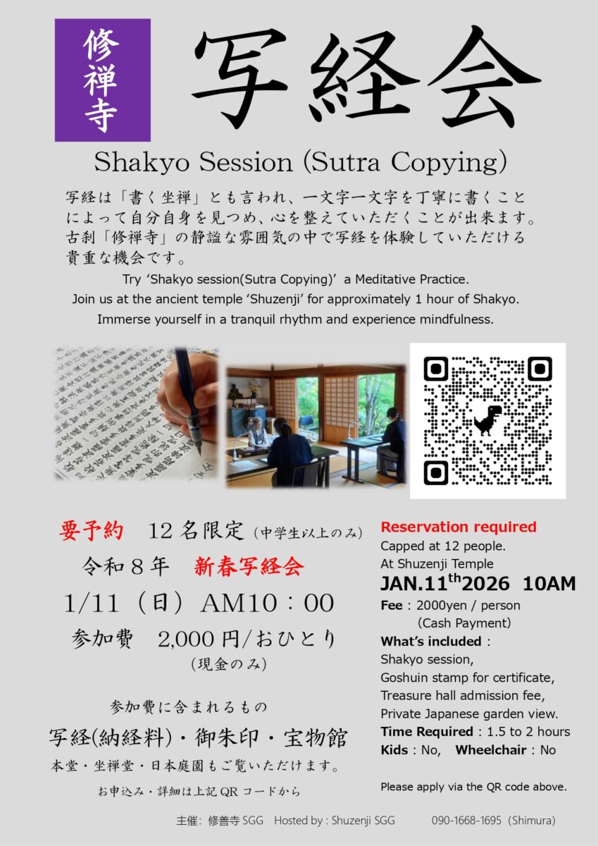 【詳細・ご予約】https://shuzenji-sgg.com/shakyo.html- チラシ