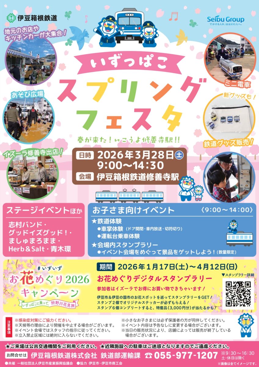 3月28日(土)に修善寺駅にて「いずっぱこスプリングフェスタ 春が来た!いこうよ修善寺駅!!」開催されます。