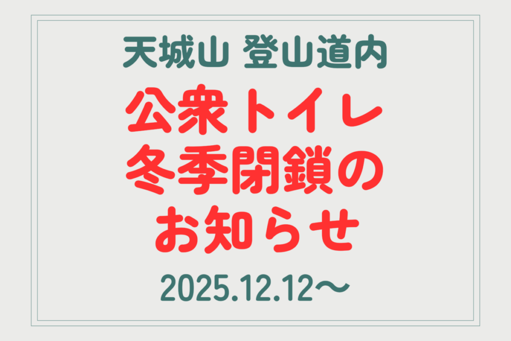 【2025.12.12~】天城山 登山道内公衆トイレ冬季閉鎖のお知らせ