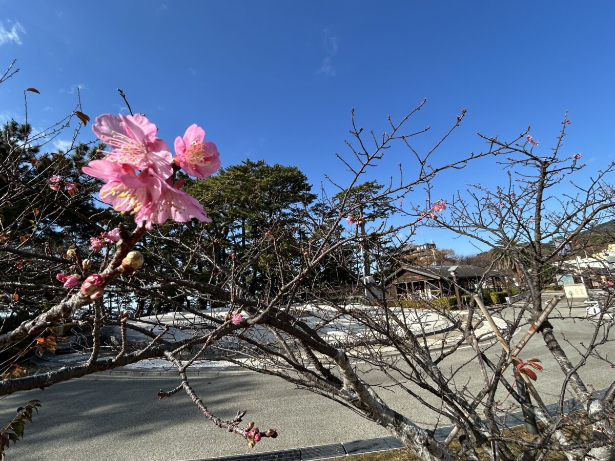 日本で最も早咲きといわれている土肥桜。12月下旬から蕾がほころびはじめ、1月上旬に開花、2月中旬まで濃いピンク色の花を咲かせる珍しい桜です。 土肥地区の各地できれいなお花を咲かせます。
