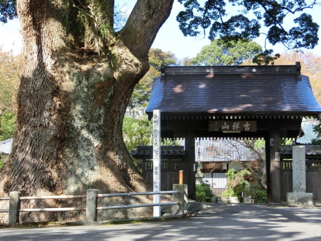 山門入口には樹齢千年余の楠の大木・境内の池のほとりには子育地蔵もあり、寺で販売の、恋愛・結婚成就を願う夫婦達磨も人気です。