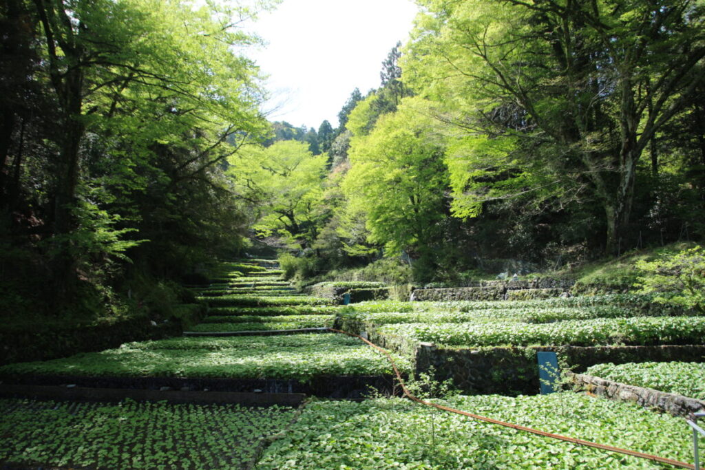 棚田の周りには木が覆いかぶさるように生えているのですが、これは先人の知恵。わさびに陽があたりすぎないように日除けの役目をしているのだそうです。