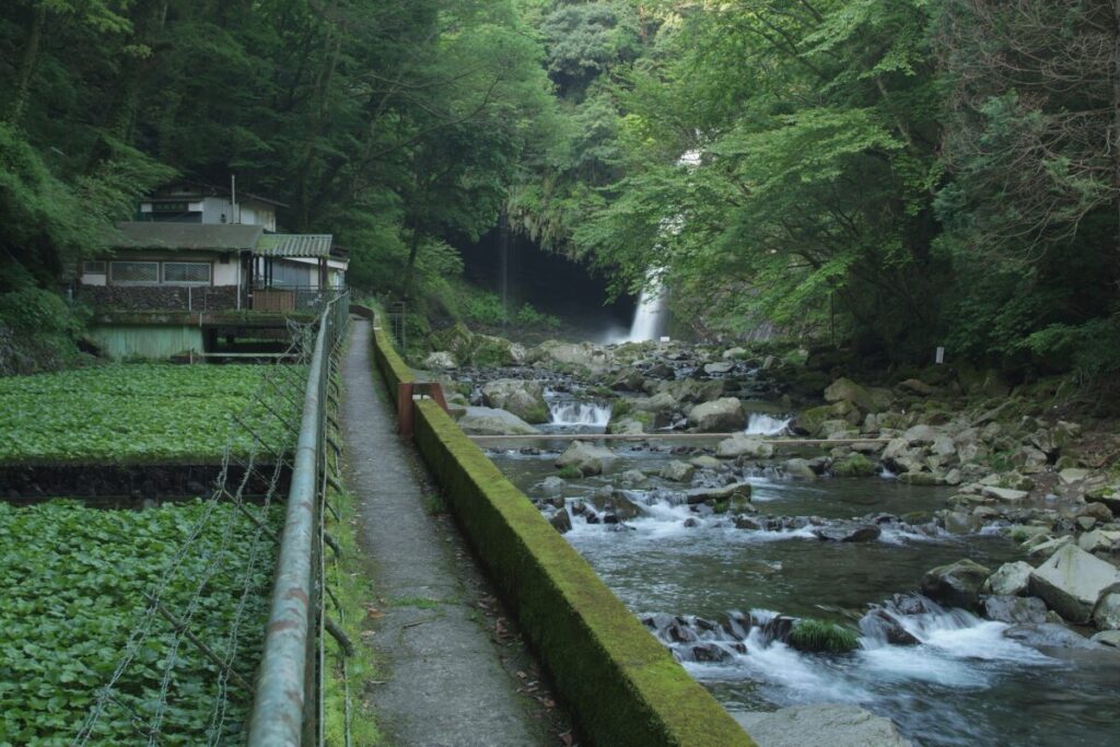 滝壺の下流には天城国際鱒釣場があり、マス釣りが楽しめたり、渓流沿いには天城名物のわさび田が続いており、わさび栽培風景を間近で見ることができます。