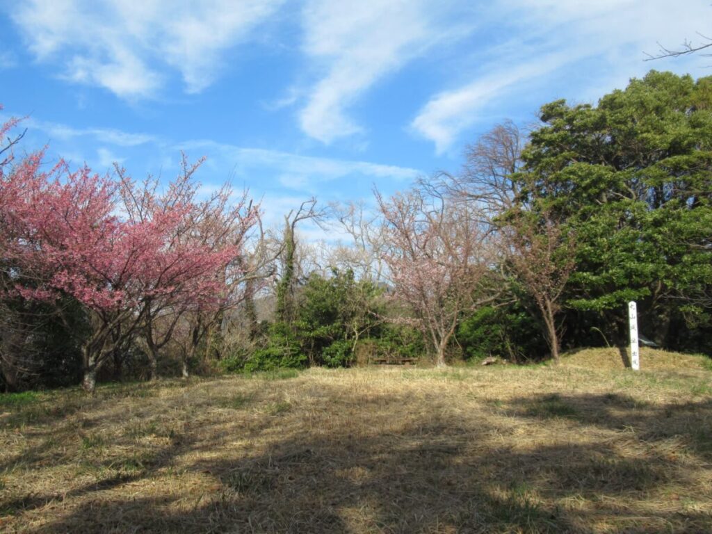 丸山城は、伊豆市八木沢にある水軍の城です。城址は、現在国道136号線で分断されていますが、八木沢海岸背後の、駿河湾に突き出た丸山(標高49m)に出城、その南側に伸びる海岸丘陵上に本城(新城)があったとされています。出城には曲輪や土塁、堀切状地形など、城の遺構が残っていますが、本城とされる区域の大半は現在畑となっています。また、現在埋め立てられて「丸山スポーツ公園」となっているあたりは、かつては広く波静かな入り江で、船溜まりとなっていたということです。丘陵の外海側は断崖絶壁で、駿河湾一帯を見渡せる丸山城は絶好の水軍基地だったのです。