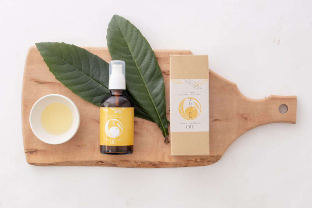ハマム浴で身体を温めたあと、びわオイルでお肌を包み込むようにお顔とデコルテのケア