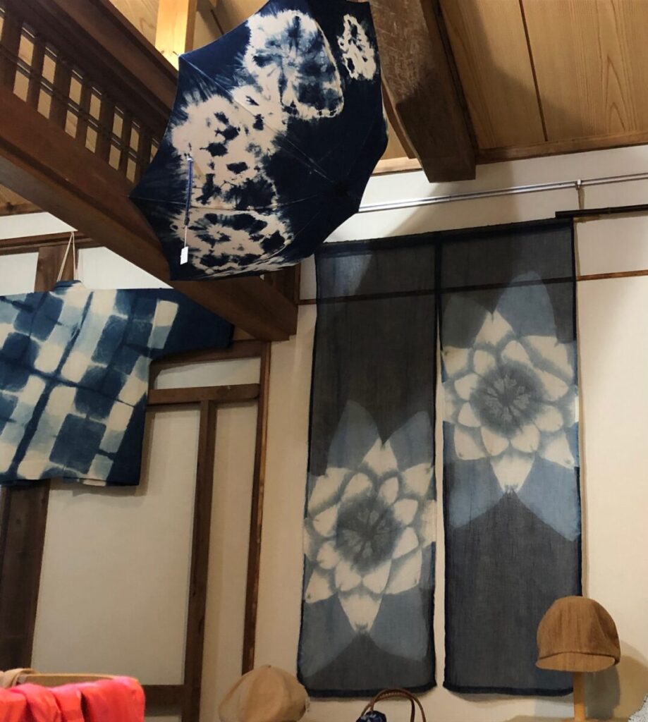 120年ほど前に建てられた蔵を、藍染を中心とした染物作品のギャラリーに改装されており、蔵の中は、数々のオリジナル作品が展示されています。