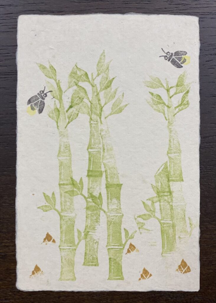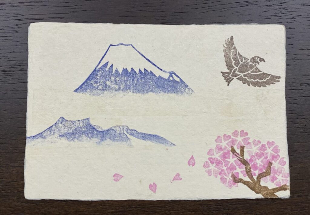 ・ハンコが完成したら、用意してあるスタンプと組み合わせて、あなたならではの修善寺の景色を作ってみてください。個人的には、台紙には和紙を使うのがおススメです。